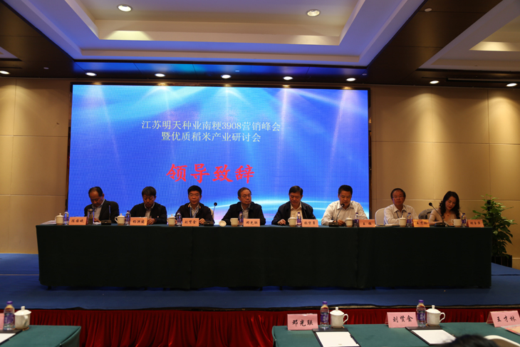 金秋十月,秋風送爽,種植“南粳3908”的田間稻香四溢,沉甸甸的稻穗隨風起伏,一片豐收在望的喜人景象。10月15~16日,我公司好味稻米新品種“南粳3908”營銷峰會暨優質稻米產業研討會在丹陽召開。會議邀請了中國種子協會副會長鄧光聯、江蘇省農科院副院長劉賢金、江蘇種業協會會長張堅勇、江蘇省農技推廣站站長管永祥、江蘇省農技推廣站副站長楊洪建、江蘇省種子站副站長陳國斌、丹陽市副市長王強、江蘇省著名水稻育種家王才林研究員等領導專家出席。來自江蘇、安徽各地的種子經銷商、種植大戶和稻米加工企業代表等200余人濟濟一堂,甚是熱鬧。