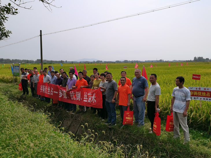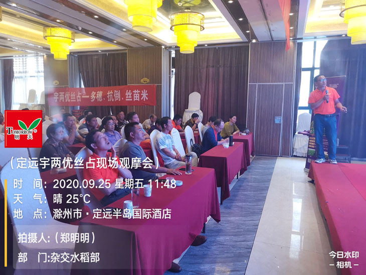 秋高氣爽,天公作美,9月24日-25日,2020年度江蘇明天種業(yè)科技股份有限公司“宇兩優(yōu)絲占”安徽省現(xiàn)場(chǎng)觀摩會(huì)在安徽定遠(yuǎn)成功召開,公司總經(jīng)理助理?xiàng)詈2ǎs交水稻部副經(jīng)理丁震、定遠(yuǎn)縣總代理鄭守健以及安徽省其他各縣代理商相聚在總理故鄉(xiāng)定遠(yuǎn),共同見證宇兩優(yōu)絲占在大田的優(yōu)異表現(xiàn)。