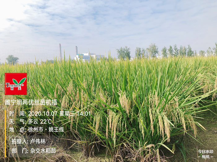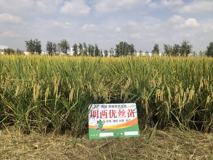 明兩優(yōu)絲苗是江蘇明天種業(yè)科技股份有限公司最新選育的秈型兩系雜交水稻組合。2020年已通過江蘇審定:蘇審稻20200031(江蘇淮河以北稀缺合法品種)。