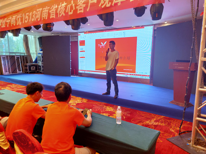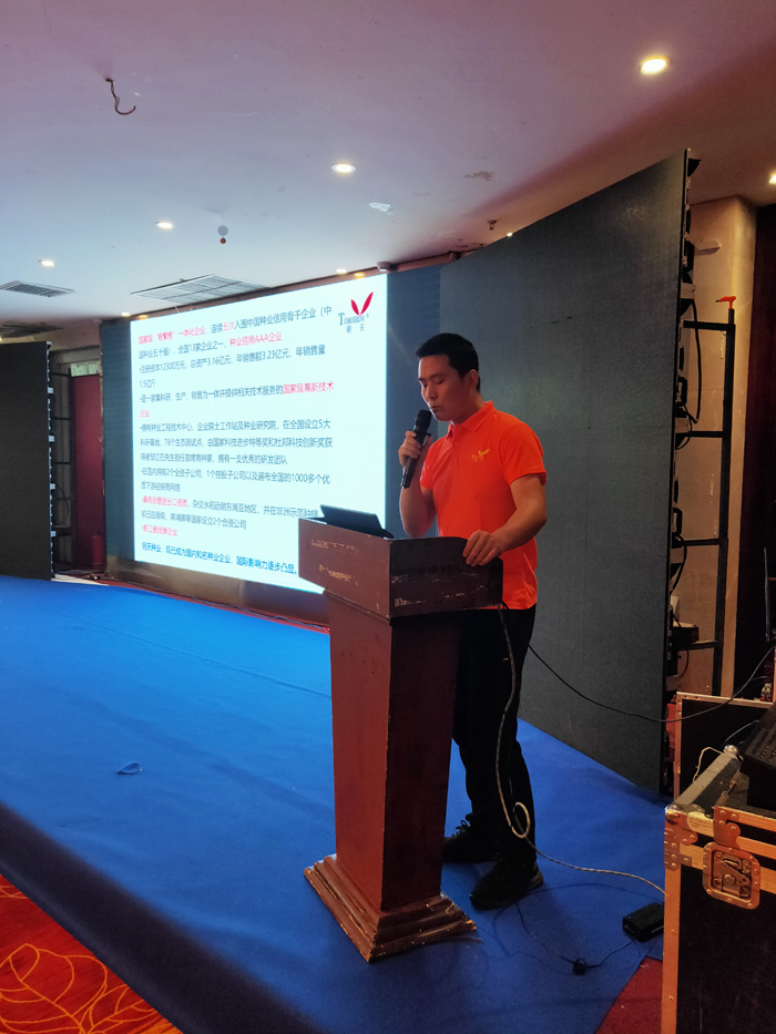 會議第四項,由固始縣代理商李學成發言,李總結合今年氣候因素和實際種植情況對“寧兩優1513”做了深入剖析。他說到:今年是真正能夠檢驗品種的一年,長期的陰雨天氣,對品種的耐低溫和抗倒能力都是嚴峻的考驗,但是“寧兩優1513”都挺住了,在沒有任何倒伏的同時結實率還能在9成以上,確實在推廣上也更放心,老百姓種的也更安心!明年會用心大力推廣寧兩優1513